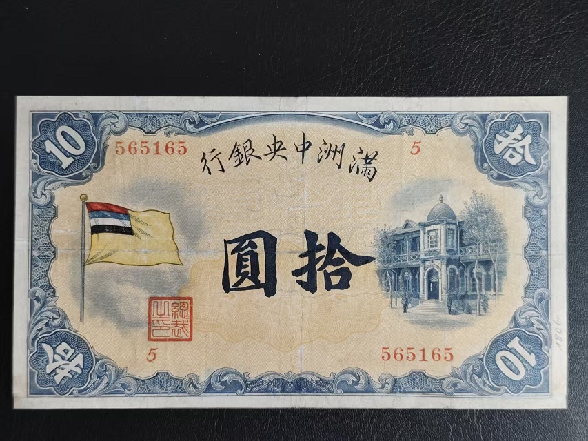 出售满洲中央银行 五色旗 拾元券 1600元一张