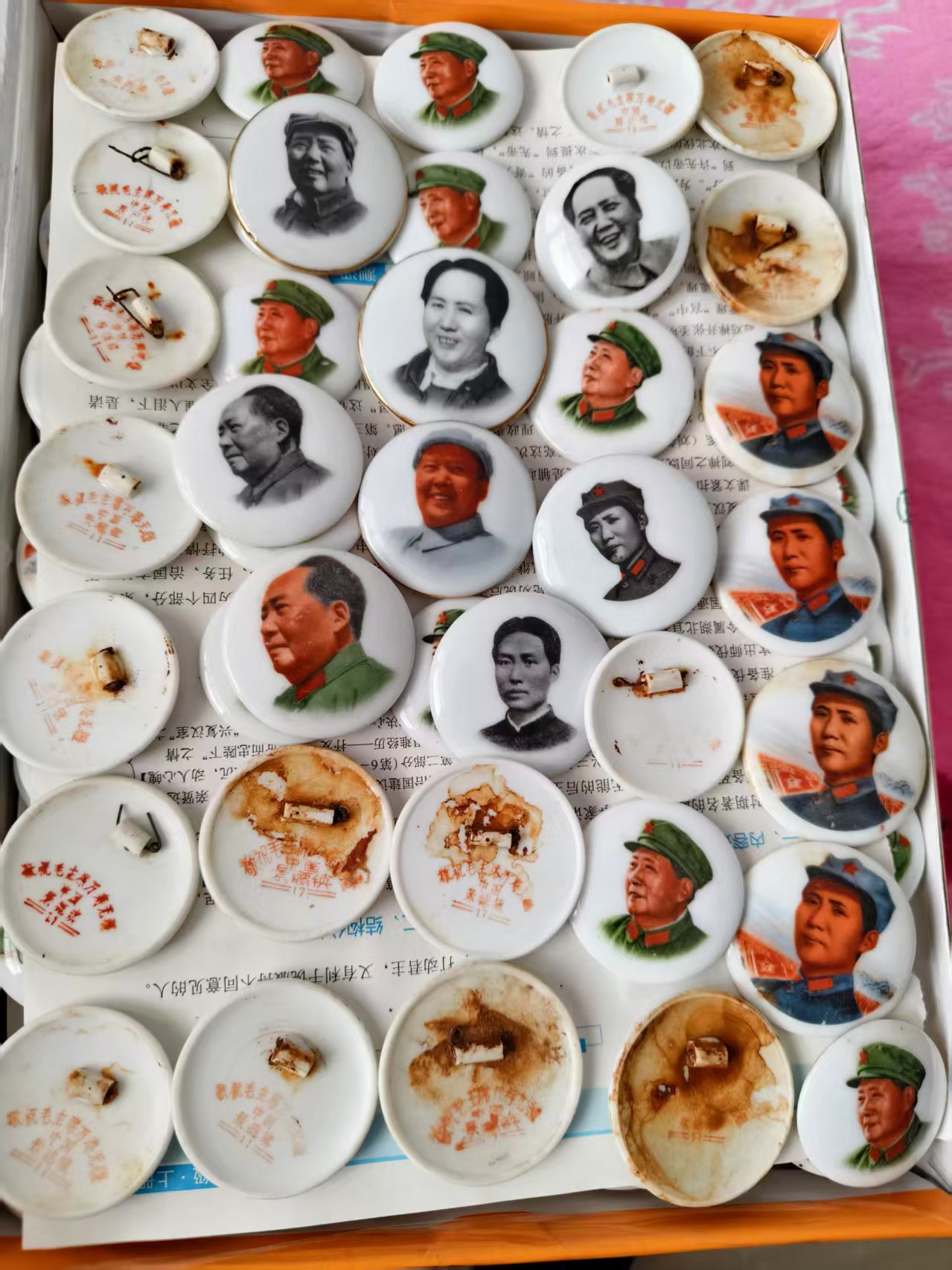 景德镇瓷像章,文革时期1968年左右的。包老包真文革章,直径3.6厘米到5.2厘米之间,大多数都是4.6厘米以上。低售19元一枚,每一个品有大小,有的品种数量多,有的品种数量很少。店网同售,电联或者微信确认为准。需要量大的可以优惠.