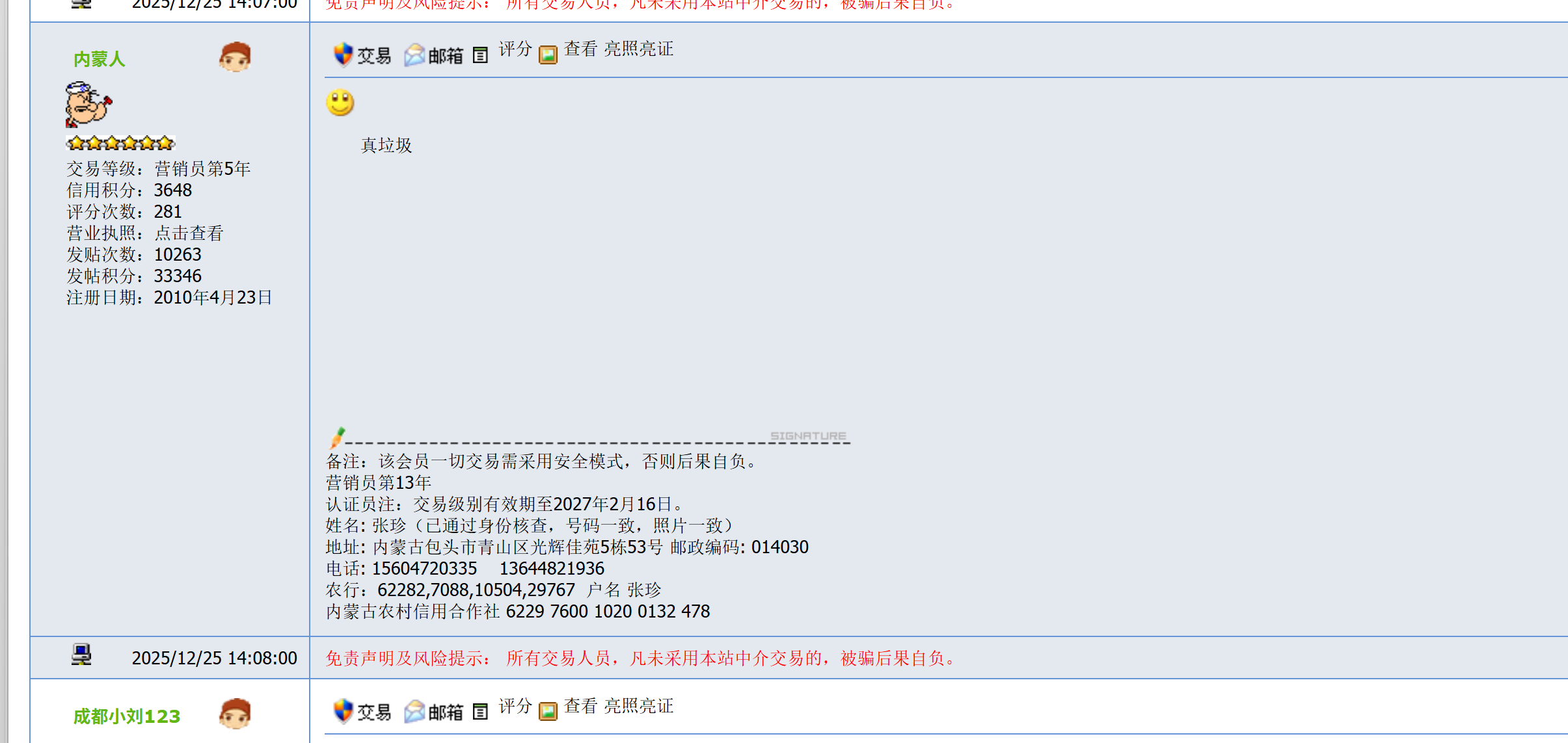 管理员注:该会员所有交易,需采用中介或其它安全模式进行。