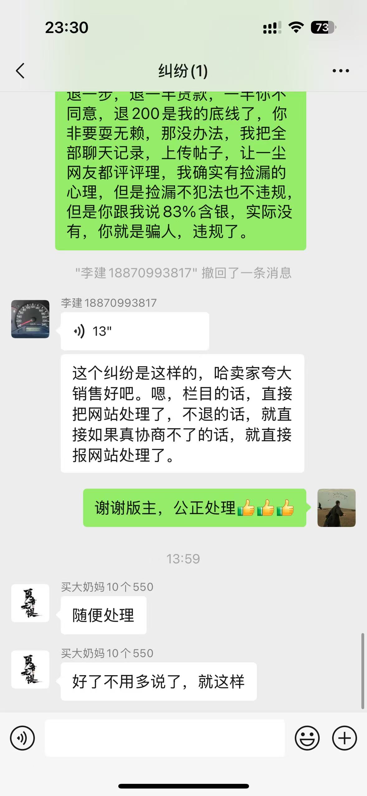 特别提醒:1,本人不替会员做担保交易,如有需要请去(中介支付专栏)。 2,调解纠纷时,如果我电话里谈到钱,请一定要求我在帖子里或站内信里以文字方式写出来给你,以防有人冒充我电话和你联系。 3,你来电时,请直入主题:报网名,谈事情,勿寒暄,谢谢