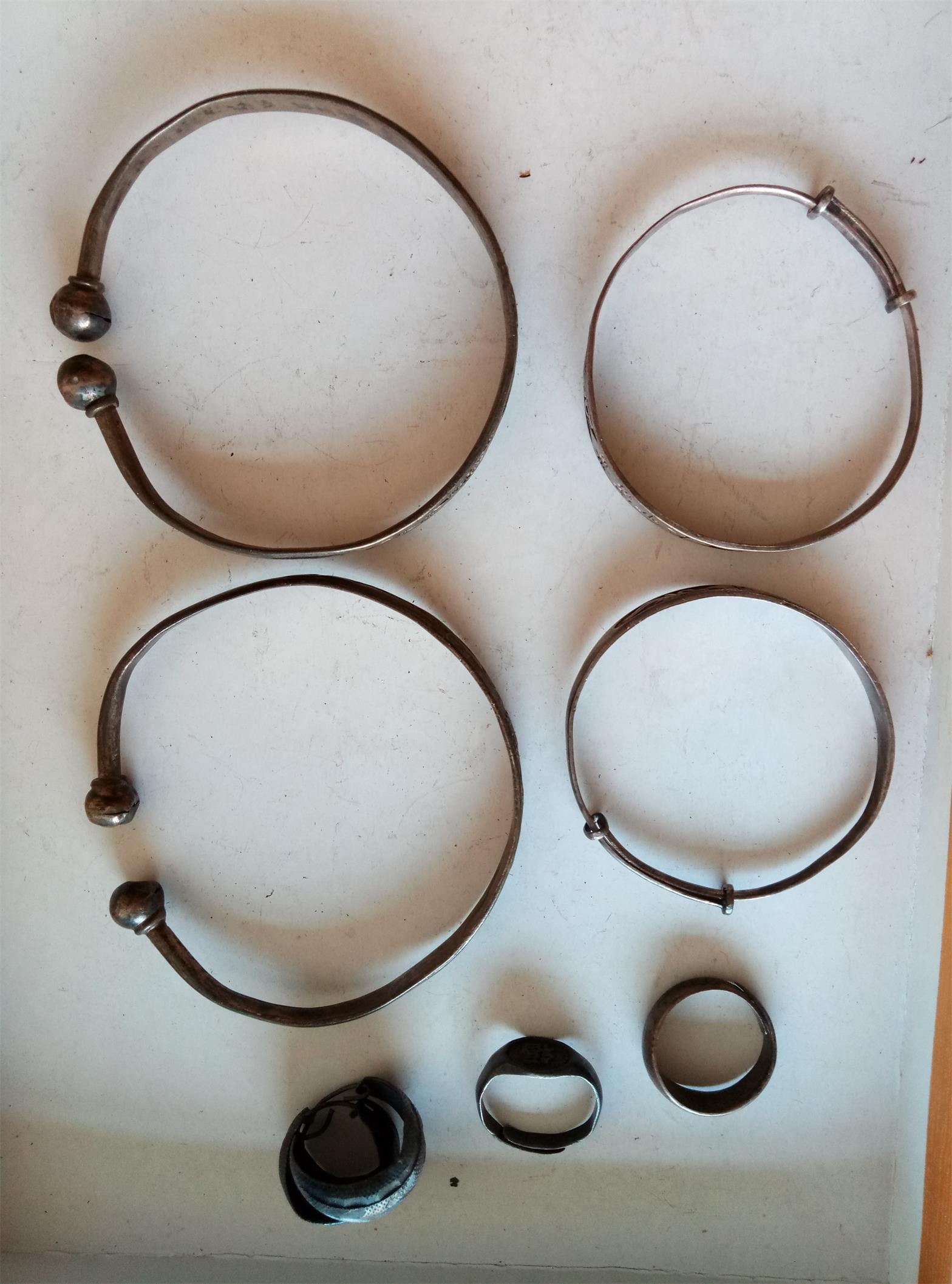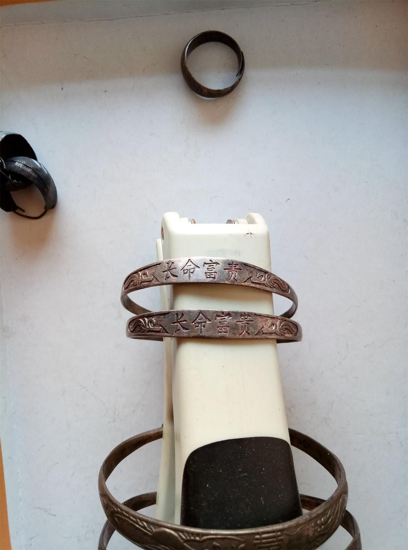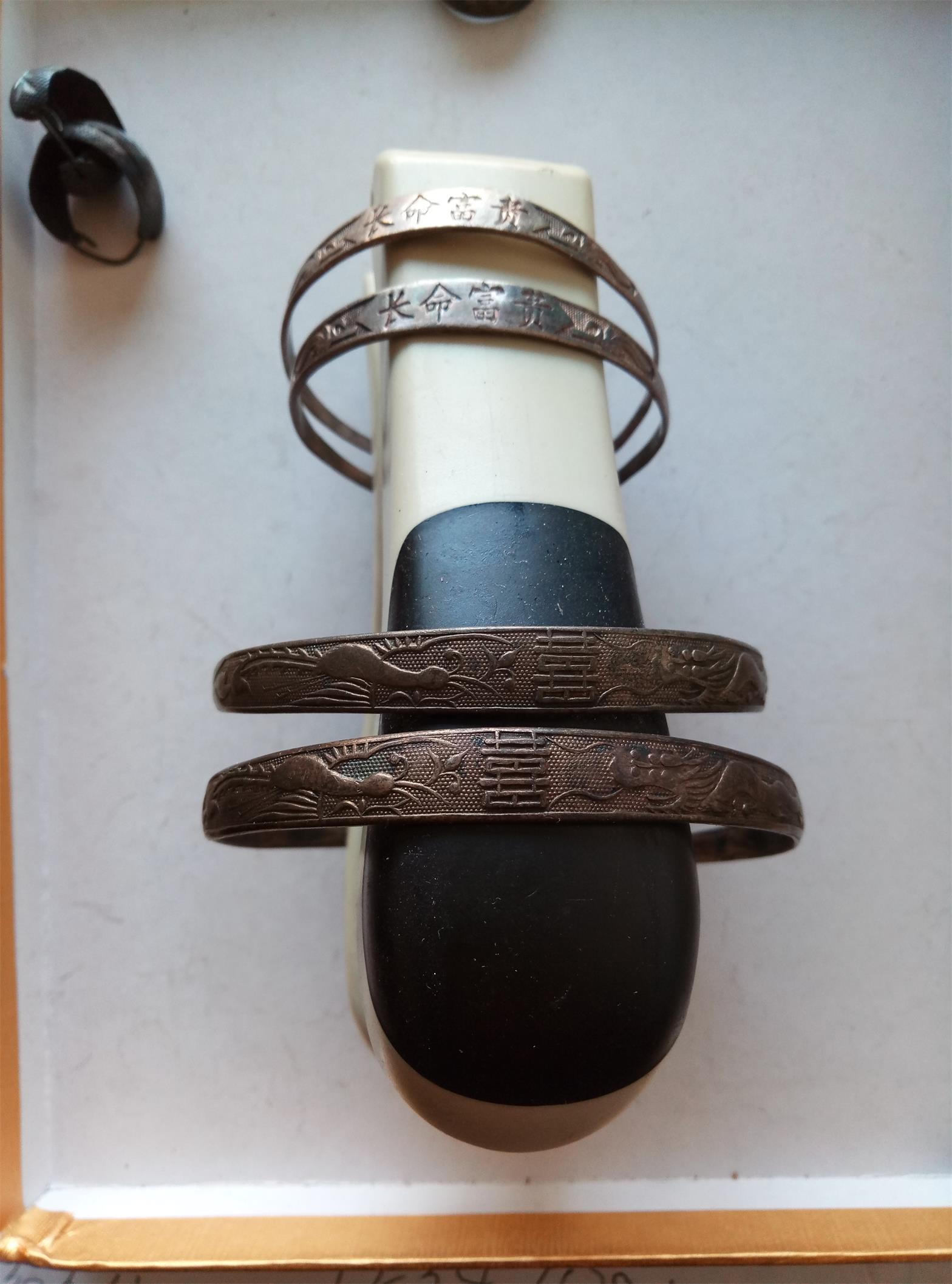 品如图。大手镯39.5克,600元,小手镯15.1克210元,耳钉3.5克50元,两个戒子2.8克+4.8克=110元。一起包顺丰。