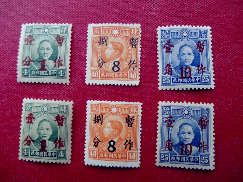 民普25 (香港版孙像加盖暂作柒分邮票) 6全 40元/套