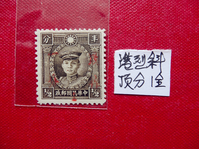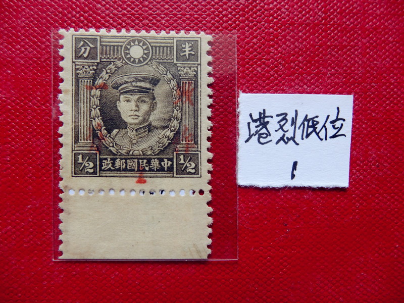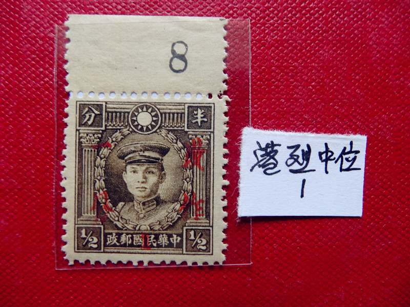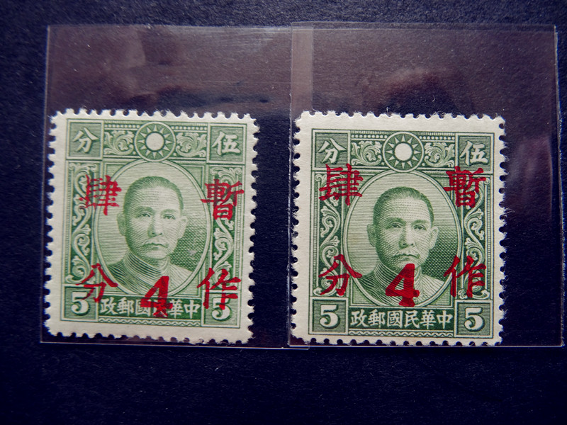 民普22 (香港大东版孙像加盖暂作肆分邮票) 1全上品 6元/枚