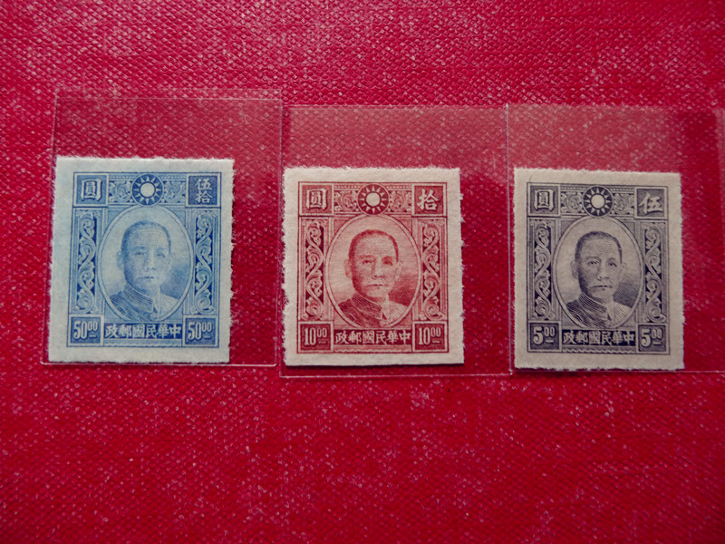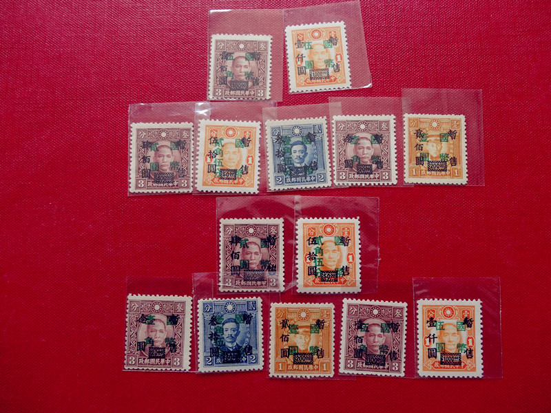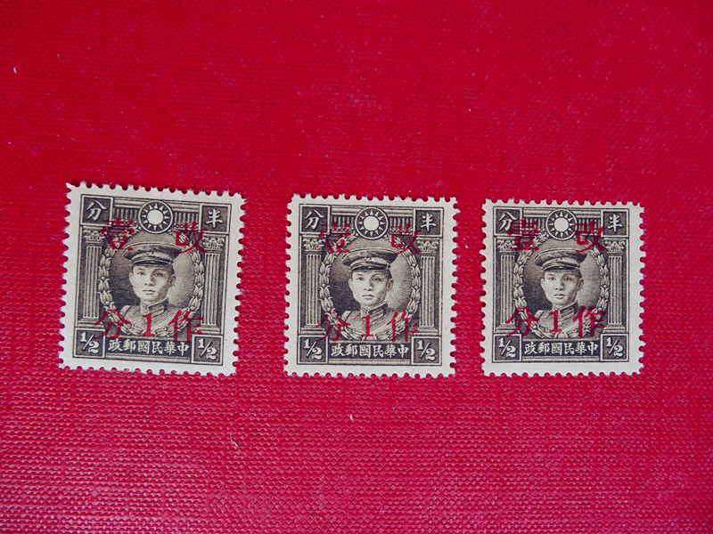 民普14(孙中山及烈士像加盖暂作改值)3全好品 40元