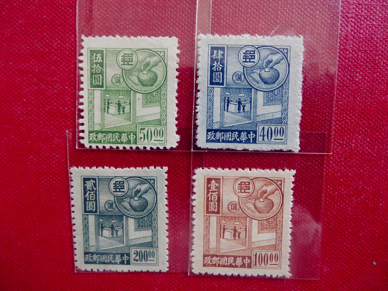 民普27(孙像烈士像改作肆角邮票)5全 60 元/套