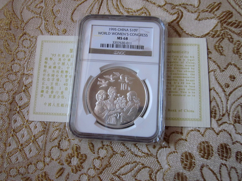以上实物图片即所售全部(币面反光、无白斑白雾、品相很好):欧亚非妇女+鲜花+和平鸽