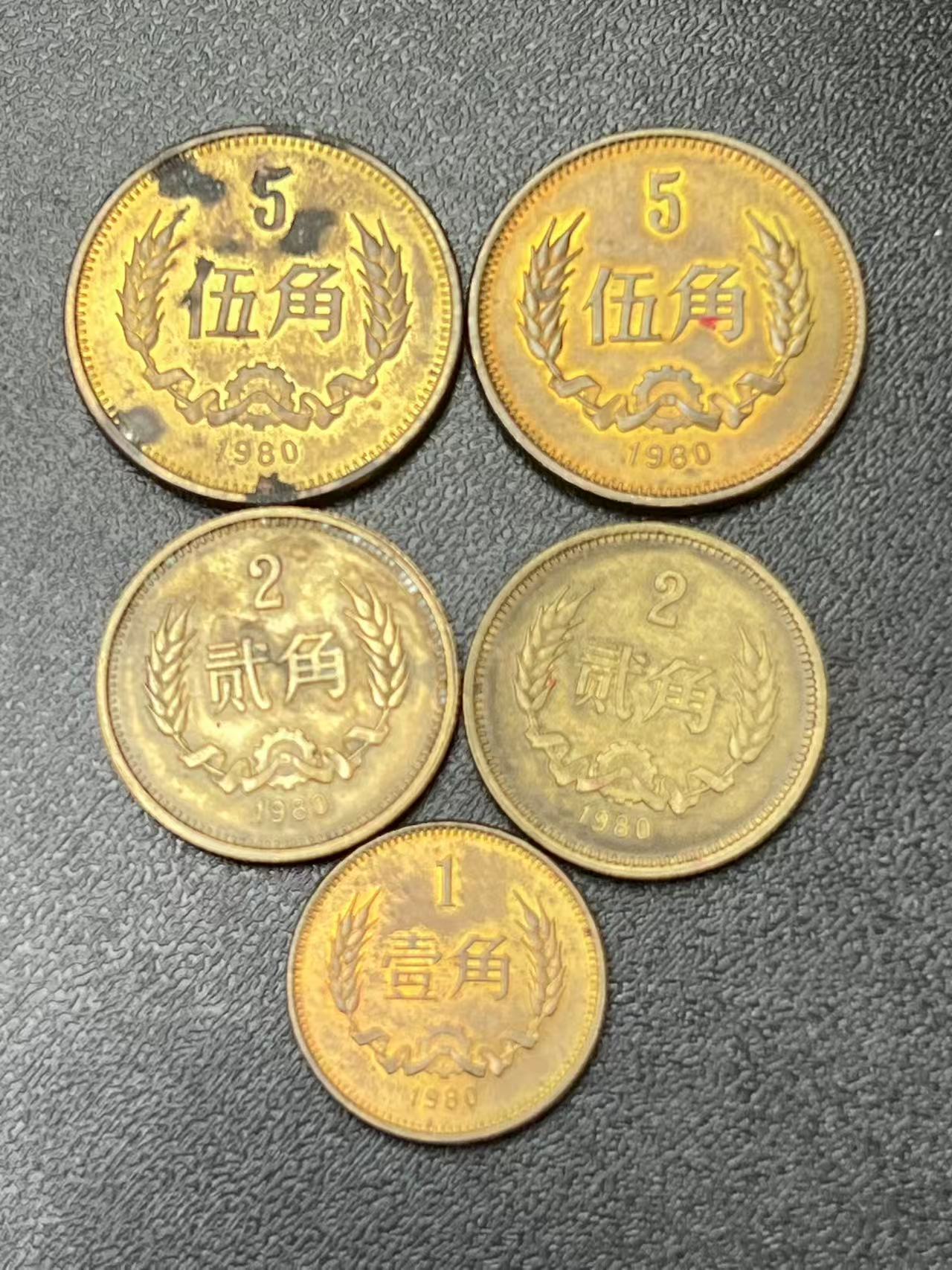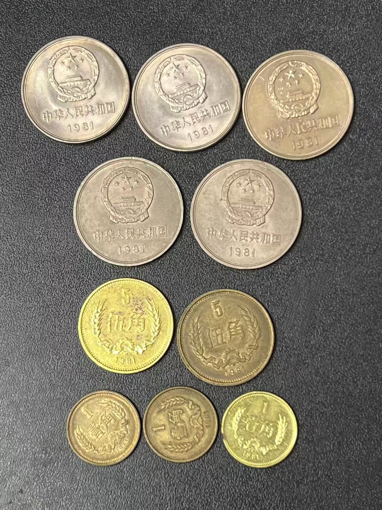 81年长城币1 元5 枚,5 角2 枚,1 角3 枚,一起售240 元!