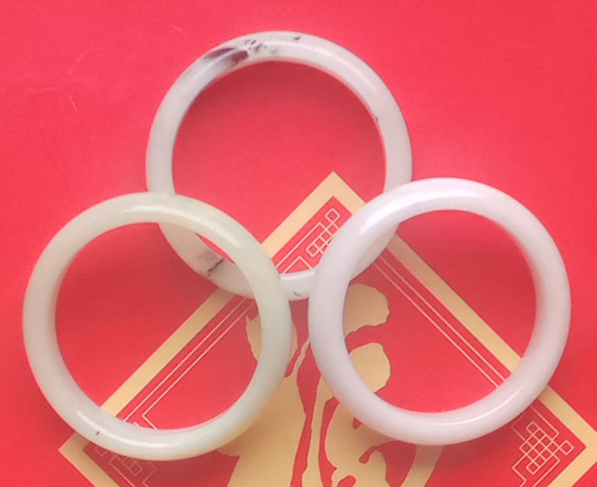 三只手镯都不错,其中左下面一只有个断纹。三只要两只的钱,那个断纹的不要钱。有需要的请电话联系。
