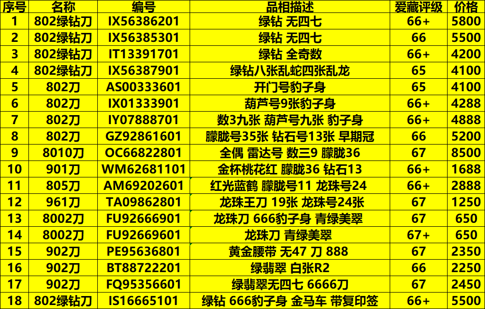 喜欢的朋友看表格价格和号码 微信上图 请微信联系确认 谢谢