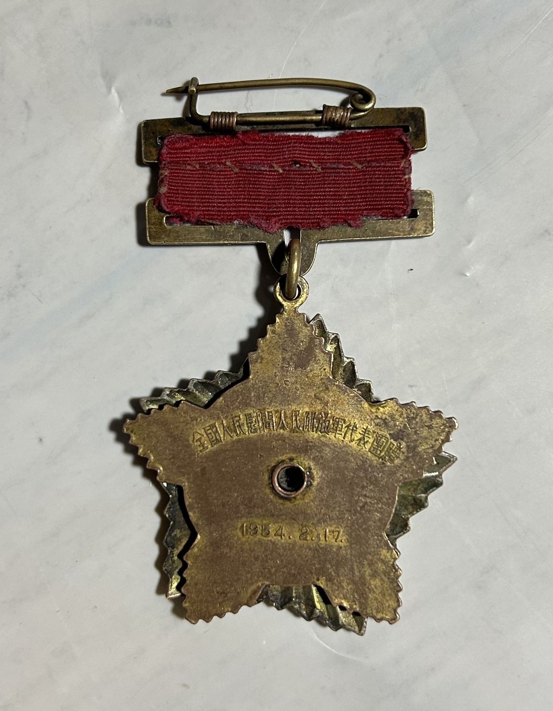 1954年全国人民慰问解放军代表团纪念章一枚。全品,包真。价格:380元。