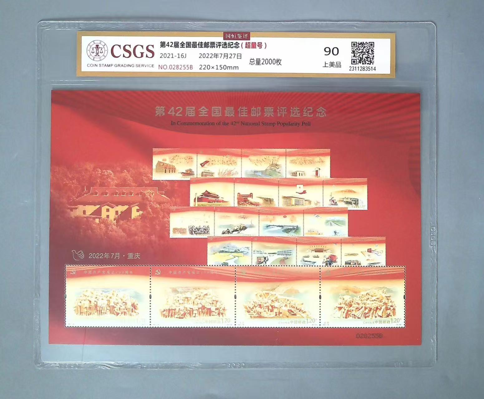 2022年7月第42届佳邮评选颁奖活动在重庆举行。在2021年度发行的邮票中《中国共产党成立100周年邮票》荣获最佳邮票奖。2022年7月27日,中国邮政特发行第42届佳邮评选张一枚,发行总量12.8万枚,(包含A版10万枚,B版2.8万枚)。因为重庆是主办地,总局特拨发8万枚用于活动,这里有个小插曲:在装帧的时候由于工作人员操作不当,造成大概1万枚评选张出现指甲印。由此引发广大邮友不满,要求退换货,重庆集邮分公司上报总局要求换货,最后只能换货2000枚: