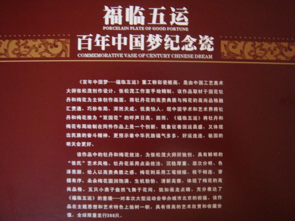 2008年北京奥运会,百年中国梦纪念瓷[福临五運]瓷版画
